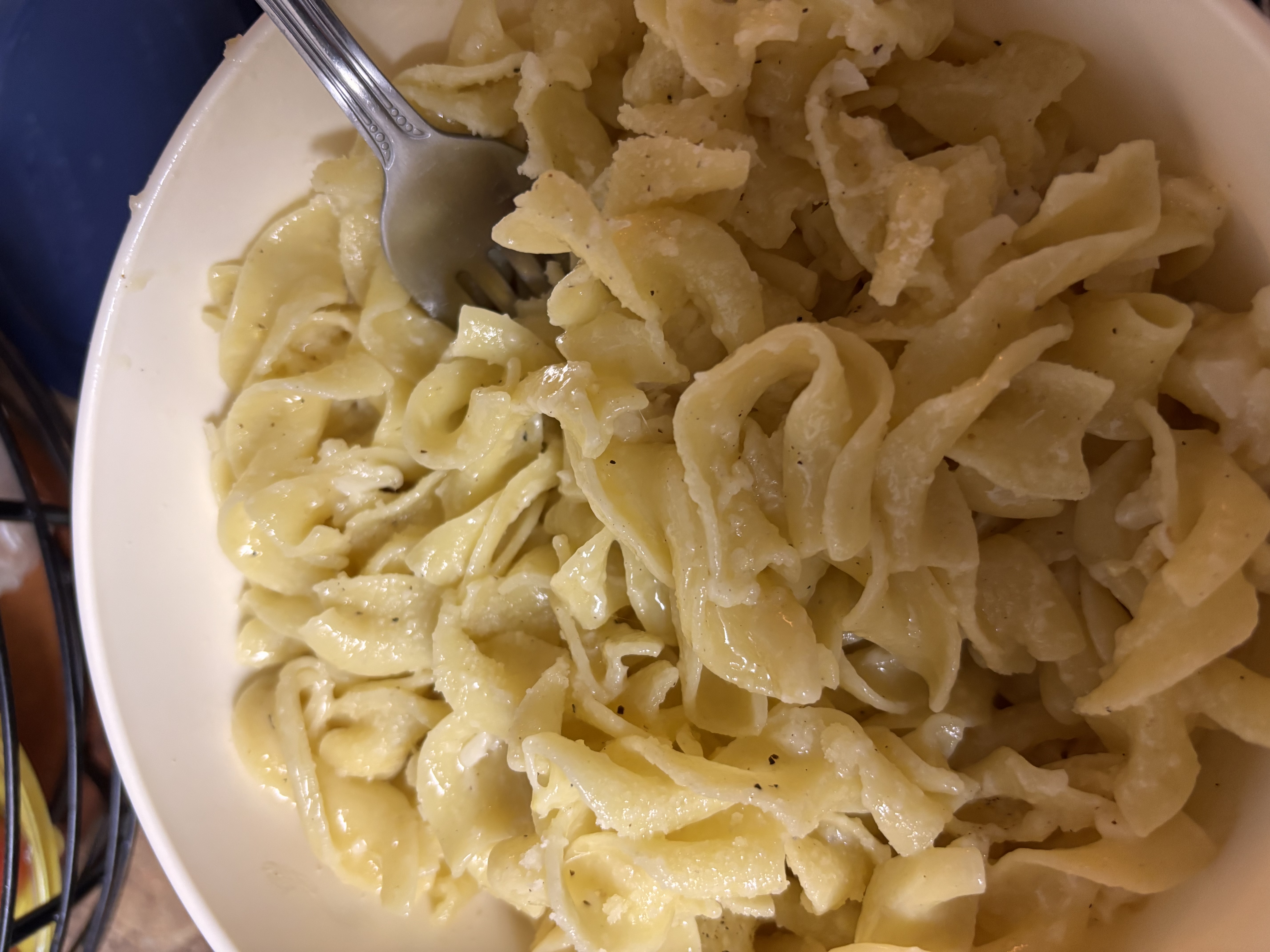 I was craving something easy and that I know I love. And so of course, buttered garlic noodles with parmesan is my go to. I cooked the egg noodles in better than boullion chicken. I reserved 1/4 cup of pasta water, then used that + measured garlic with my heart + half a stick of butter and just melted it all down. Turned the heat down, added the grated parmesan and put it all together. Topped it off with black pepper. Delicious as always!!! This was a me-only meal.